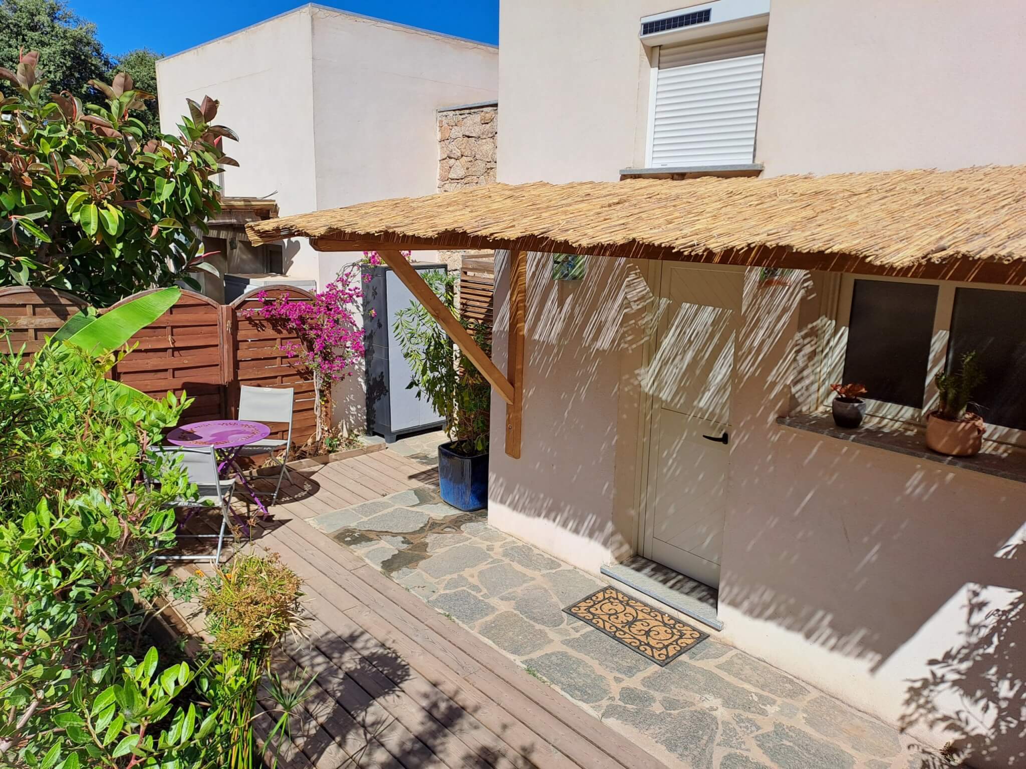 - Wooden terrace, with outdoor shower south terrace entrance side